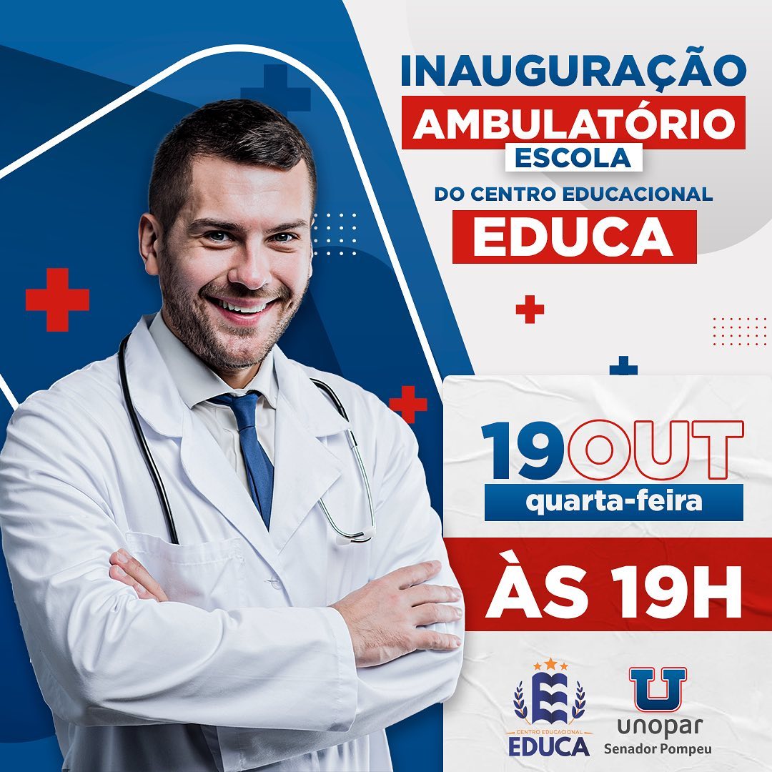 VEM Aí AMBULATÓRIO ESCOLA🚨 Novo Projeto do @centro.educacional.educa e @unoparsenador O cotidiano como docente no curso de Técnico em Enfermagem e Bacharel de Enfermagem no Centro Educacional Educa e na Unopar Senador Pompeu tem demonstrado que é necessário repensar a prática do aluno, oferecendo oportunidade para desenvolver ações de enfermagem em outro ambiente e oferecendo serviços para à população. Com base nesse pressuposto pensamos na criação de um ambulatório de Enfermagem no espaço escolar, nele será possível realizar ações de enfermagem em um ambiente no qual teoria e prática estão muito mais próximas e em condições inovadoras. A Inauguração do Ambulatório será no dia 19/10 (quarta-feira), às 19hH, no polo da Unopar Senador Pompeu! Sintam-se todos convidados a virem prestigiar e conhecer nosso espaço! 🤩